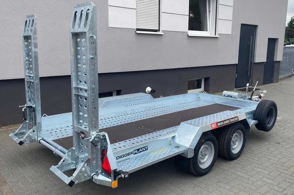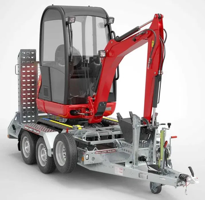 Beschreibung: Zum Verkauf steht ein fabrikneuer Profi-Anhänger der Premiummarke Brian James Trailers (BJT), Modell Digger Plant 2. Dieser Anhänger wurde speziell für den harten Einsatz beim Transport von Baumaschinen wie Minibaggern und Walzen entwickelt.